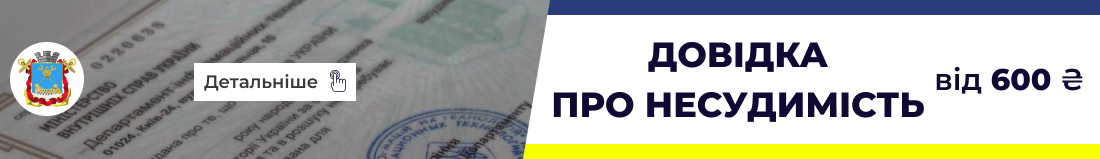 | Довідка (витяг) про відсутність судимості без апостилю ТЕРМІНОВО | 2-3 робочих дня | 2000/2400 |